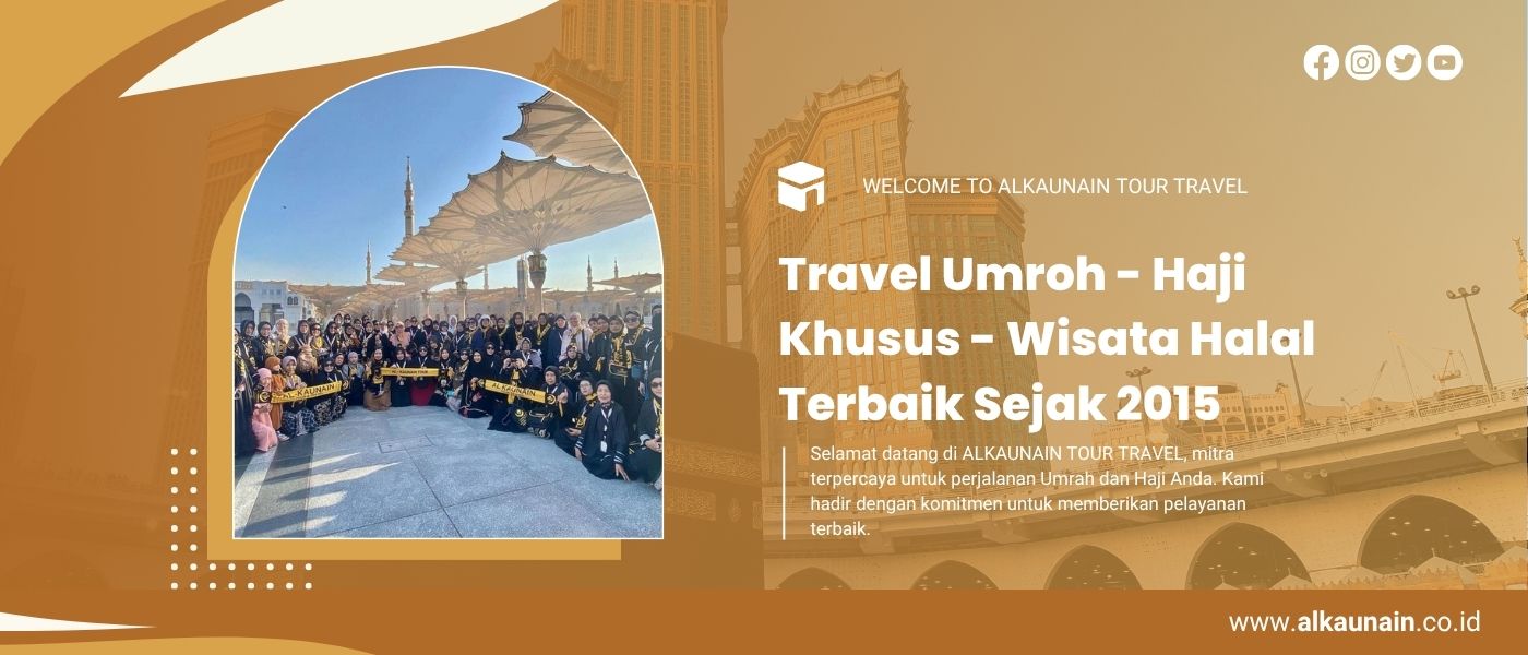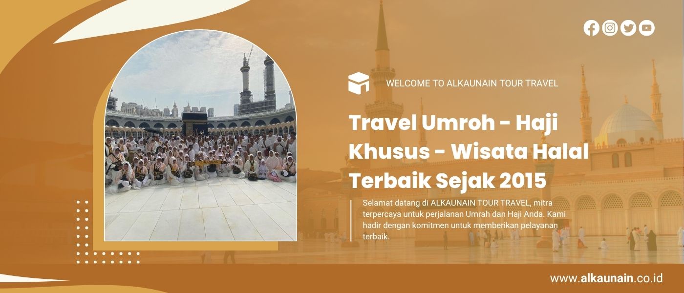 Selamat datang di ALKAUNAIN TOUR TRAVEL, mitra terpercaya untuk perjalanan Umrah dan Haji Anda. Kami hadir dengan komitmen untuk memberikan pelayanan terbaik, mulai dari persiapan keberangkatan hingga kenyamanan selama di tanah suci.